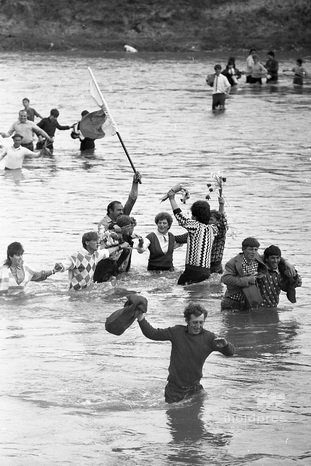 Regizorul Vlad Druc a surprins cu camera de luat vederi îmbrățișări emoționante, mii de oameni care mergeau cu flori pe podul jalonat cu sârmă ghimpată. Alături de ei mergeau și liderii Mișcării de Eliberare Națională.