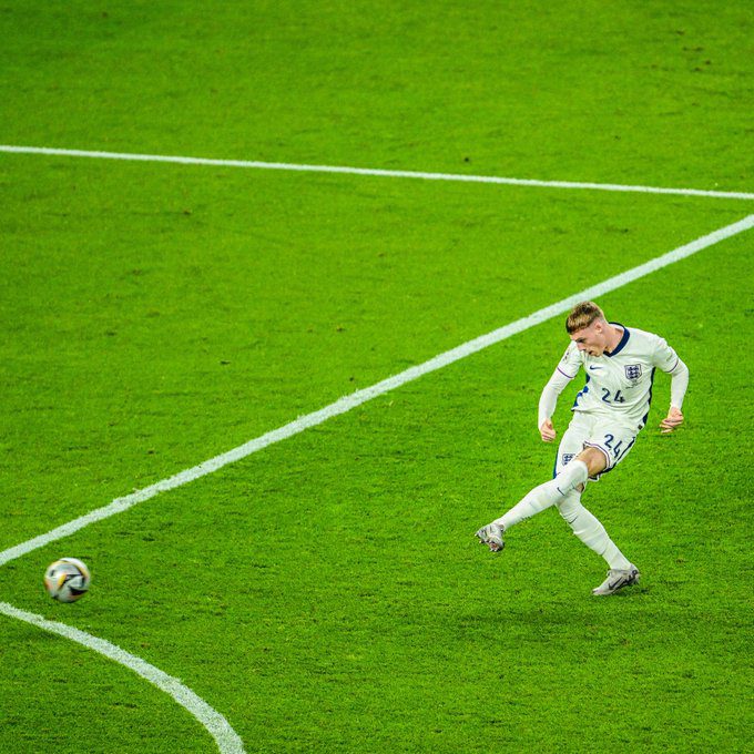 Mingea a ajuns la Bellingham în interiorul careului, acesta l-a servit ideal pe Palmer, abia intrat, la marginea careului, care a strâns în șut toată setea englezilor de a mai avea o șansă în această finală, și a scuturat plasa Spaniei, un șut imparabil pentru Unai Simon, care s-a văzut învins.