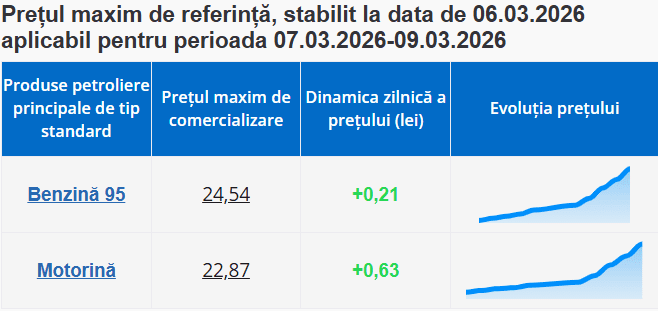 Astfel, benzina se va scumpi cu 21 de bani, iar motorina cu 63 de bani. Un litru de benzină va putea fi cumpărat cu 24 de lei și 54 de bani, iar un litru de motorină cu 22 de lei și 87 de bani.