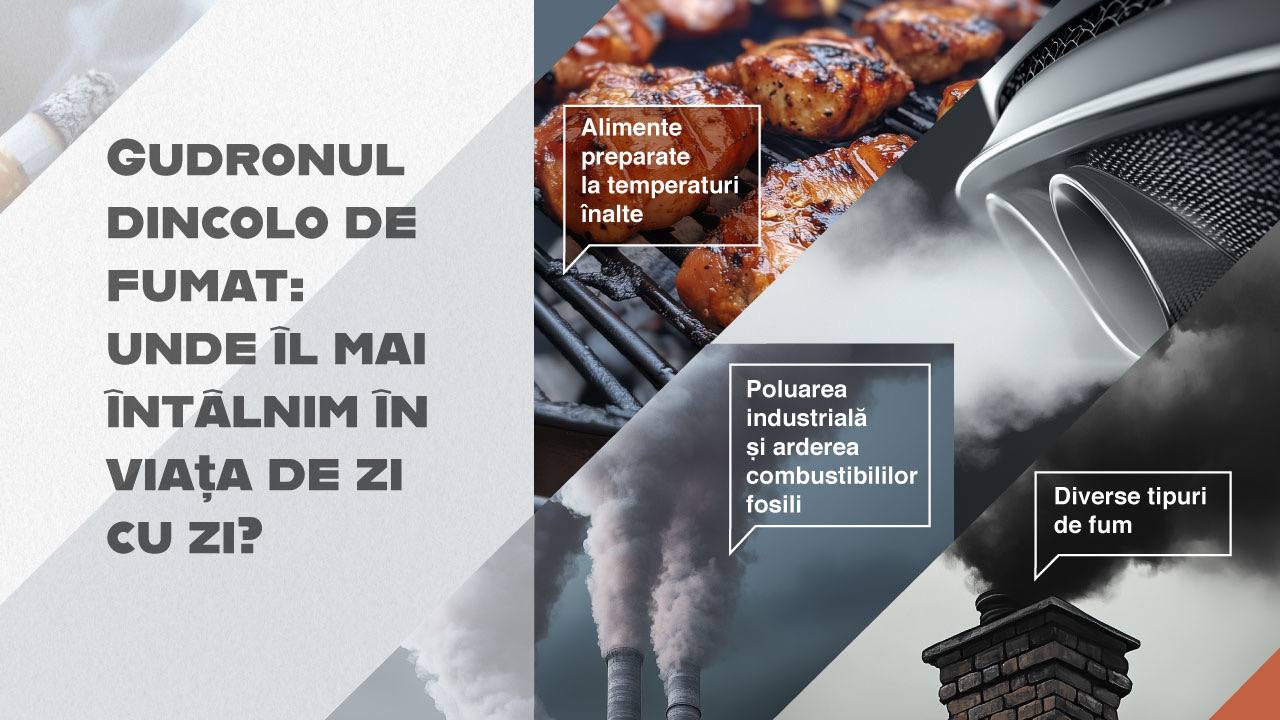 Gudronul este o substanță nocivă care rezultă din procesele de ardere a materiei organice, fiind prezent nu doar în fumul de țigară, ci și în poluarea industrială, gazele de eșapament, fumul de lemn sau cărbune și chiar în alimentele preparate la temperaturi ridicate. Deși adesea invizibil, impactul său asupra sănătății este semnificativ, contribuind la afecțiuni respiratorii, cardiovasculare și chiar oncologice.