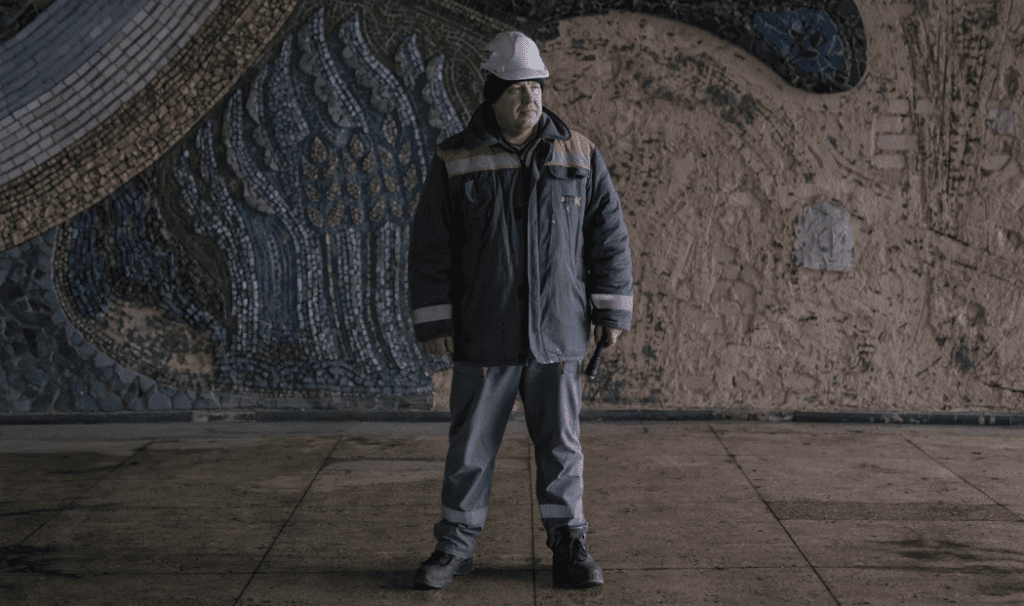 Acum, rușii folosesc rachete de concepție sovietică pentru a ataca aceste uzine de concepție sovietică. Când sună sirena de raid aerian, muncitorii se grăbesc la adăpostul antiatomic din epoca sovietică, construit cu gândul la un atac dinspre vest, nu dinspre est, de către planificatori. Unda de șoc a unei lovituri recente a smuls de pe perete cea mai mare parte a unui mozaic grandios din epoca sovietică, care preamărea forța de muncă.