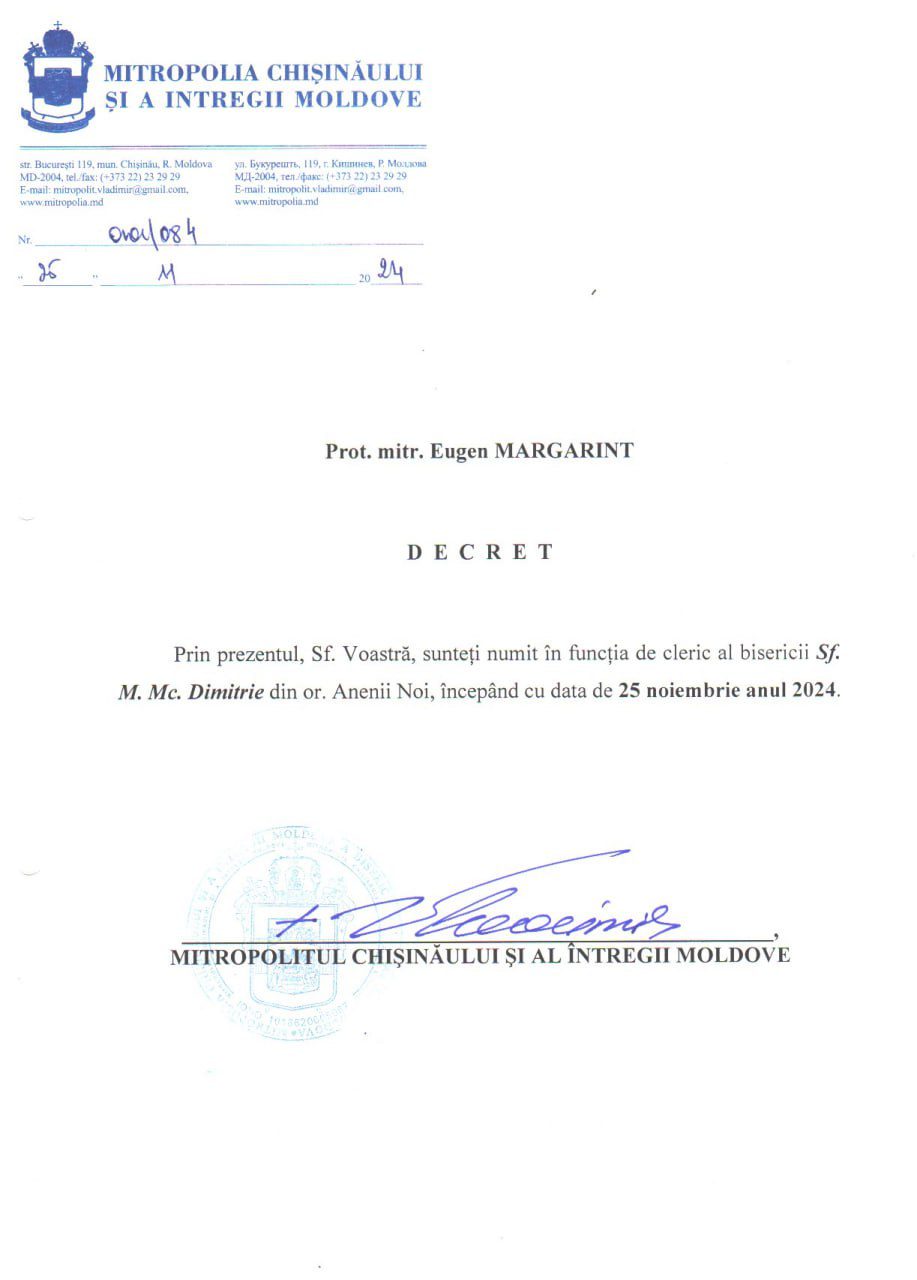DOC // Din cauza violenței în familie, parohul Ghenadie Valuța nu mai are dreptul de a oferi binecuvântare și a purta cruce preoțească