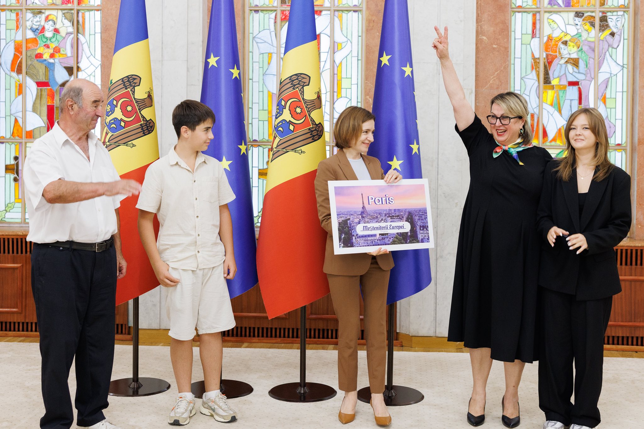 Echipa câștigătoare a concursului național „EU & bunicii mei” din nordul țării, „Moștenitorii Europei” din Sîngerei, a fost premiată cu o călătorie la Paris. Premiul mare a fost înmânat chiar de președinta țării, Maia Sandu.