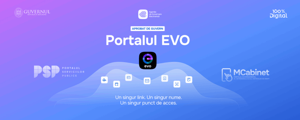 Portalul integrat EVO va fi lansat până la sfârșitul acestui an și va reuni într-un singur loc toate serviciile publice online destinate cetățenilor, antreprenorilor și diasporei. Agenția de Guvernare Electronică (AGE) va asigura dezvoltarea și completarea continuă a ecosistemului EVO, cu o investiție inițială de circa 1,5 milioane de lei, destinată dezvoltării infrastructurii și centralizării accesului la servicii electronice, informează moldpres.