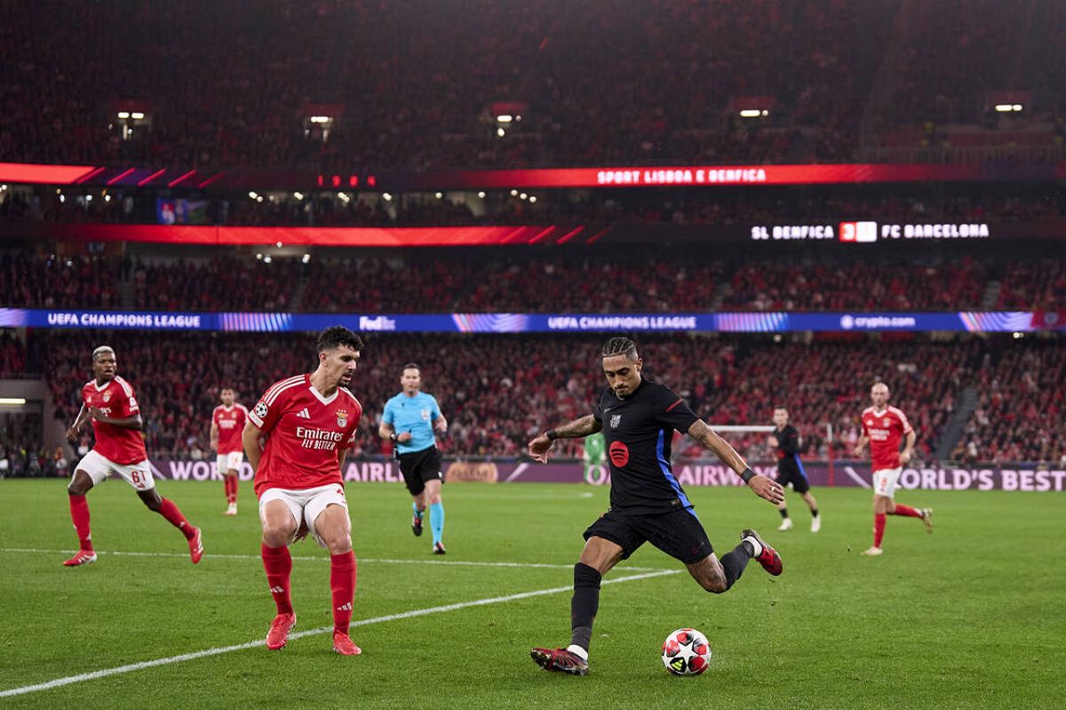 Benfica a deschis scorul rapid prin Pavlidis, iar Lewandowski a egalat după 11 minute. Pavlidis a reușit să înscrie din nou după o eroare a apărării catalane, profitând de o ciocnire între portarul Szczesny și Balde. Până la pauză, Pavlidis a completat un hat-trick cu un penalty.