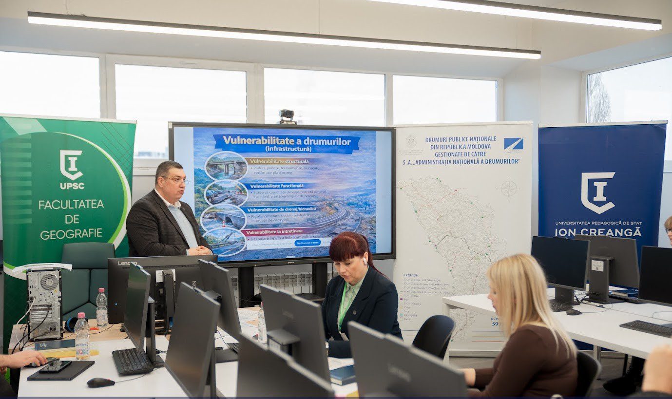 Problemele tot mai frecvente generate de fenomenele meteorologice extreme și degradarea infrastructurii rutiere au fost principalele subiecte abordate astăzi în cadrul Mesei Rotunde „Utilizarea tehnologiilor GIS în analiza vulnerabilității infrastructurii”, desfășurate la Universitatea Pedagogică de Stat „Ion Creangă”. Evenimentul a fost realizat în parteneriat cu Agenția Națională pentru Cercetare și Dezvoltare, în cadrul proiectului CLIMADE – „Vulnerabilitatea infrastructurii de drumuri și a populației în fața riscurilor climatice: soluții bazate pe știința datelor și cercetarea spațiului”, scrie moldpres.