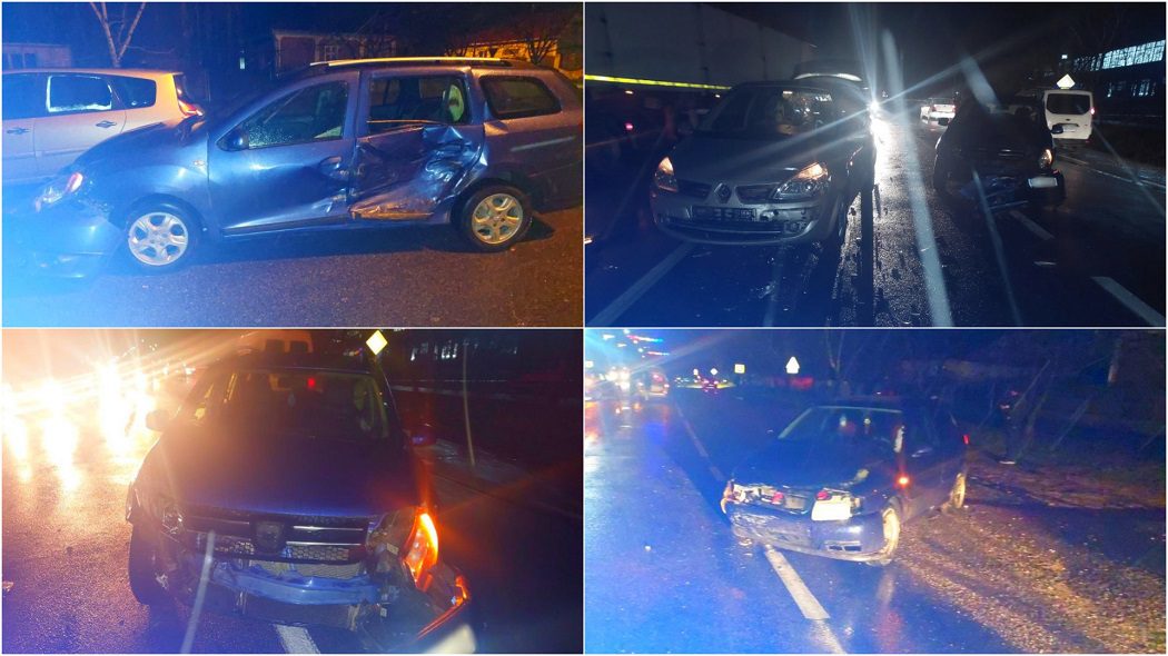 Potrivit oamenilor legii, un tânăr de 18 ani, aflat la volanul unui automobil de model Volkswagen Polo, nu s-ar fi asigurat corespunzător la o intersecție și nu a cedat trecerea unui alt automobil, marca Dacia Logan, care se deplasa regulamentar, condus de un bărbat de 45 de ani. În urma manevrei, automobilul Volkswagen Polo a tamponat lateral stânga vehiculul Dacia Logan. Ulterior, un tânăr de 20 de ani, care conducea un automobil Renault Megan, nu a anticipat situația și nu a avut suficientă distanță pentru a opri, tamponând astfel și automobilul Dacia, care deja era implicat în accident.