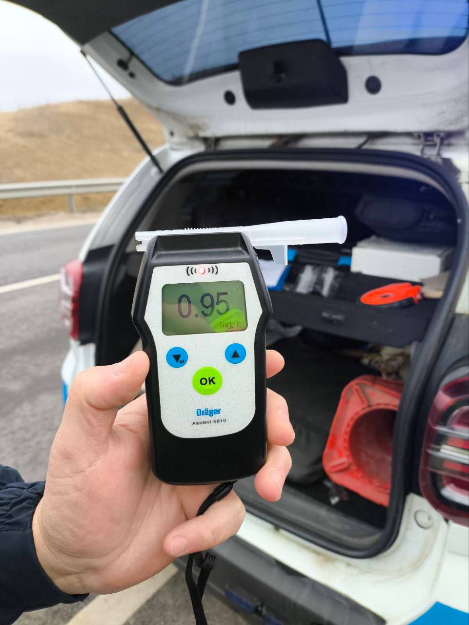 Făptașul a fost testat alcoolscopic, iar rezultatul a indicat o concentrație de 0,95 mg/l alcool în aerul expirat, ceea ce confirmă starea de ebrietate avansată. Oamenii legii documentează cazul.