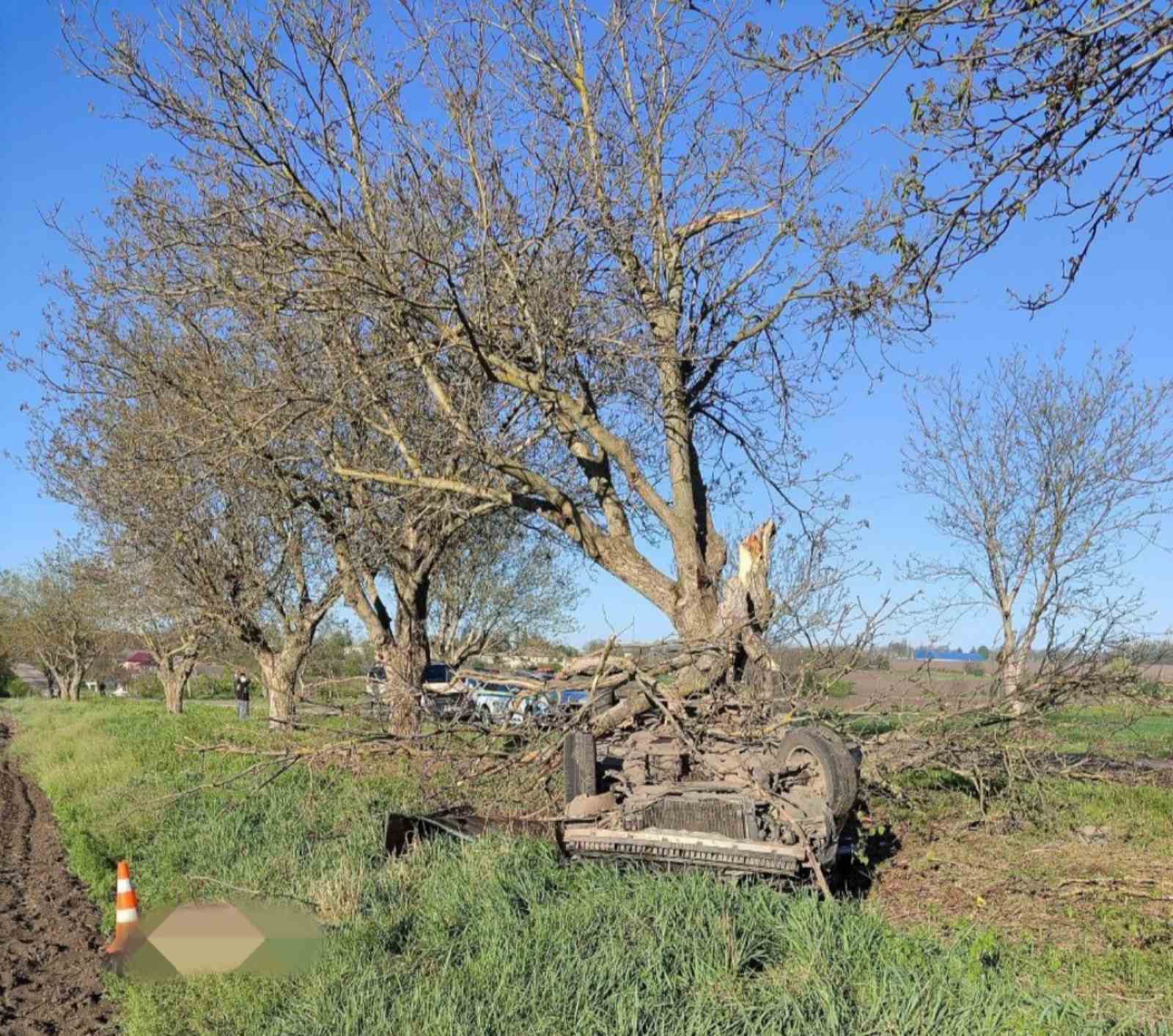 Într-o curbă periculoasă, din cauza vitezei excesive, șoferul a pierdut controlul volanului, iar mașina a derapat de pe traseu și s-a izbit violent într-un copac de pe acostament.
