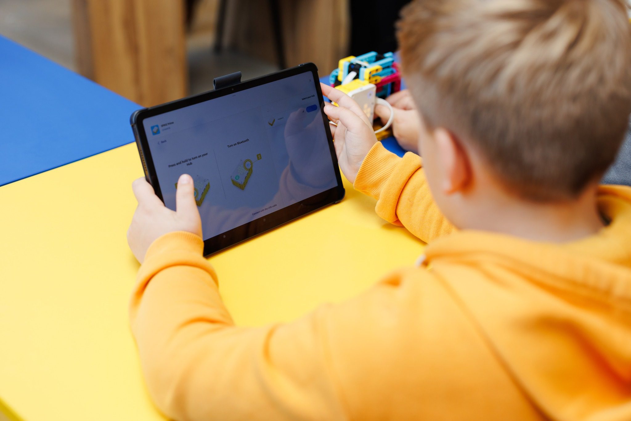 În fiecare sâmbătă, Sergiu este prezent la Orhei pentru a-i ghida în lumea roboticii pe copiii pasionați de tehnologie. Acum, cu sprijinul Uniunii Europene și PNUD, copiii din Orhei au acces la seturi de construcție, care includ piese de lego, senzori, motoare, tablete și mini hub-uri de programare, plus o tablă interactivă.