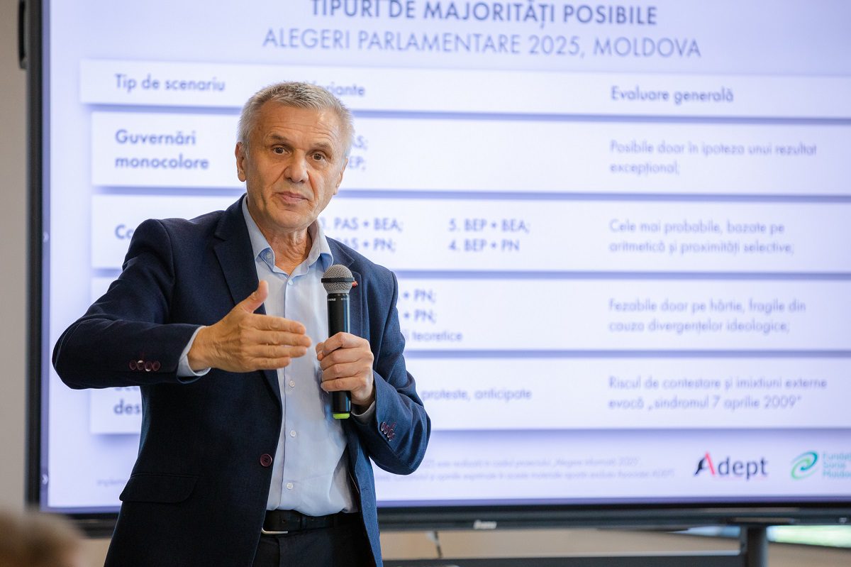 „Este rezultatul simulărilor pe care le-am făcut. Cel mai probabil, după alegeri am avea o coaliție de guvernare. Dar asta nu înseamnă că după alegeri vom avea aceste rezultate. Aceste simulări sunt bazate pe sondaje de opinie. Am ținut cont de faptul că în 2019 și 2021, când am avut alegeri parlamentare, rezultatele sondajelor de opinie, în mod surprinzător, au coincis sau au fost foarte aproape cu rezultatele finale ale alegerilor. De această dată, noi am descoperit un lucru foarte interesant. Pe site-ul alegeri.md noi arătăm toate sondajele din perioada preelectorală și electorală și am descoperit un lucru care ne-a pus pe gânduri. În mod straniu, odată cu apropierea zilei alegerilor, numărul indecișilor în sondajele de opinie crește vertiginos. Dacă anterior, era normal să avem 20-30% de indeciși, de data asta am ajuns la 40% de indeciși”, a declarat Igor Boțan, directorul executiv ADEPT.