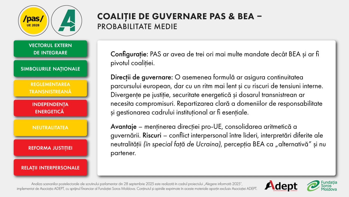 Alte patru scenarii posibile sunt coaliția de guvernare PAS și BEA, cu o probabilitate medie; coaliția de guvernare BEP și BEA, cu o probabilitate moderată; coaliția de guvernare PAS și PN, cu o probabilitate moderată; coaliția de guvernare BEP și PN, puțin probabilă.