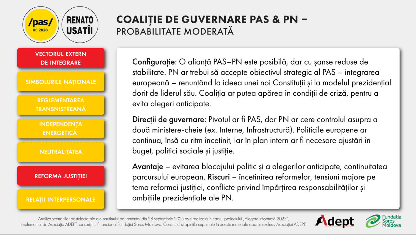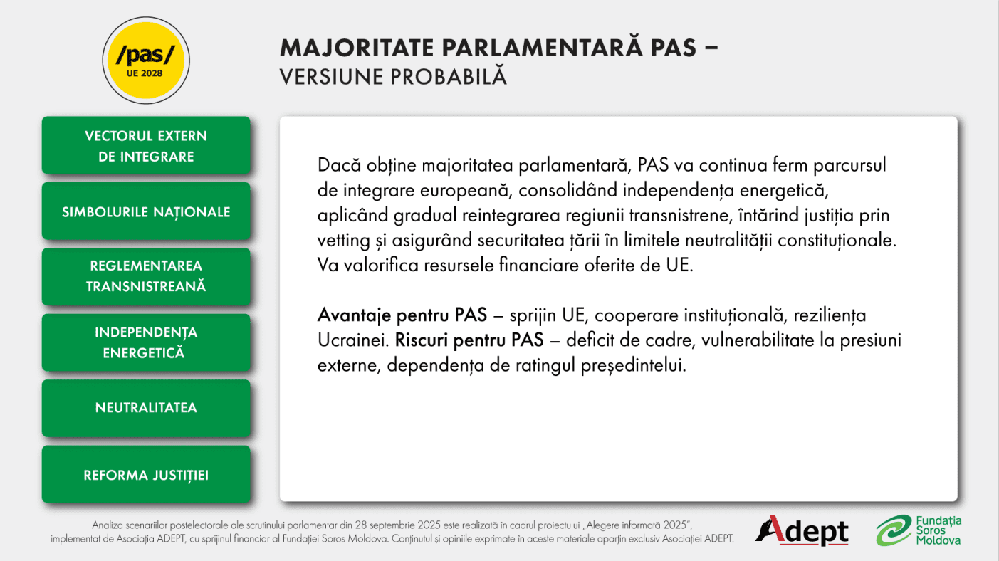 Aceeași prognoză sugerează că majoritatea parlamentară PAS este o versiune PROBABILĂ. Aceasta va continua ferm parcursul european al R. Moldova, consolidând independența energetică a țării.