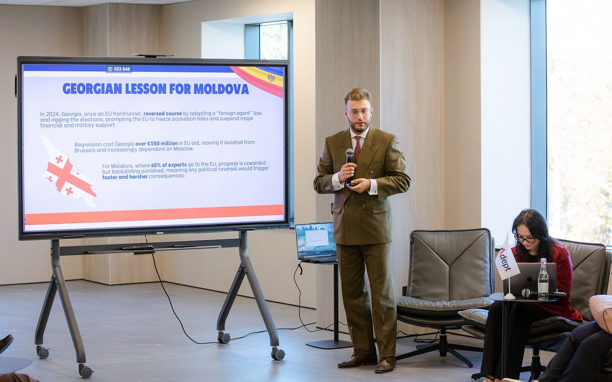 Rostyslav Klimov, expert din Ucraina, a prezentat o cercetare cu privire la consecințele pe care le-ar putea suporta R. Moldova dacă va fi condusă de o putere pro Kremlin. Acesta a declarat că alegerile parlamentare sunt cruciale nu doar pentru Moldova dar și pentru Ucraina, România și toată Uniunea Europeană.