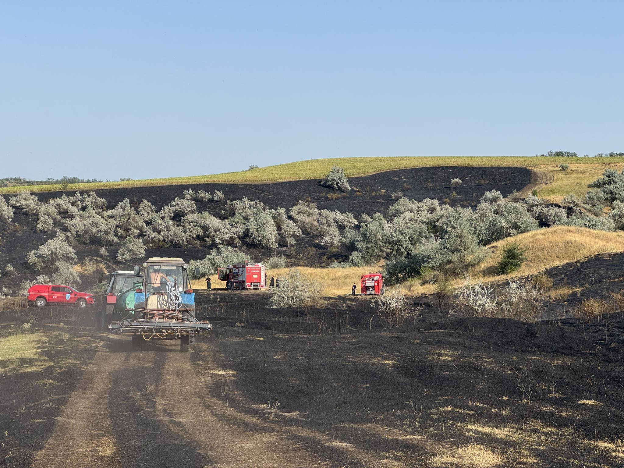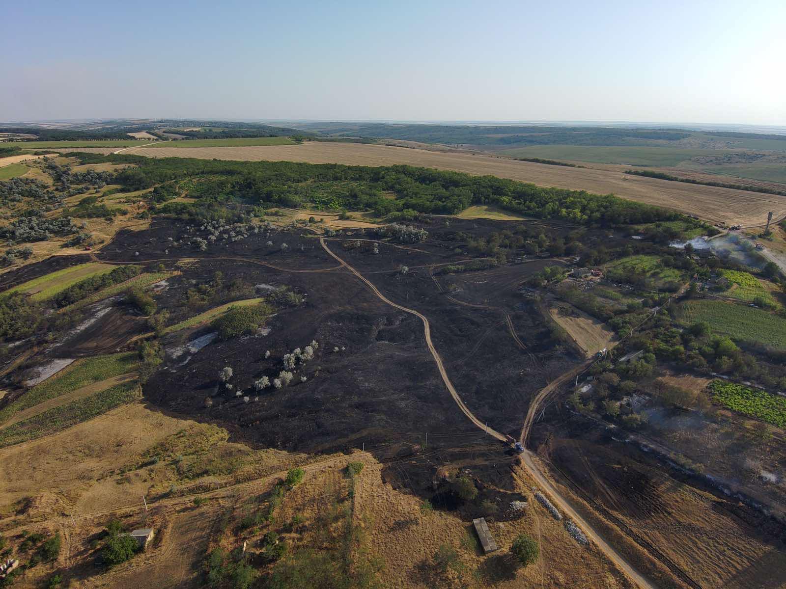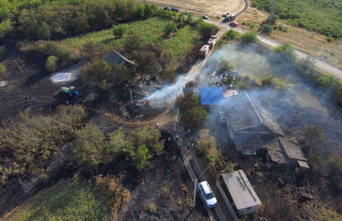 „Ajunși la fața locului, angajații IGSU au stabilit că, din cauza condițiilor meteorologice, incendiul se răspândea spre pădure și mai multe case din apropiere. Datorită eforturilor comune ale forțelor implicate, incendiul a fost localizat la ora 17:30, fiind salvate mai multe construcții auxiliare ale caselor de locuit aflate în zona de risc. După 11 ore de intervenție, incendiul a fost lichidat. Focul a distrus circa 25 de hectare de teren, 3 locuințe părăsite și 300 de tiucuri din paie. Victime nu au fost raportate”, precizează IGSU.