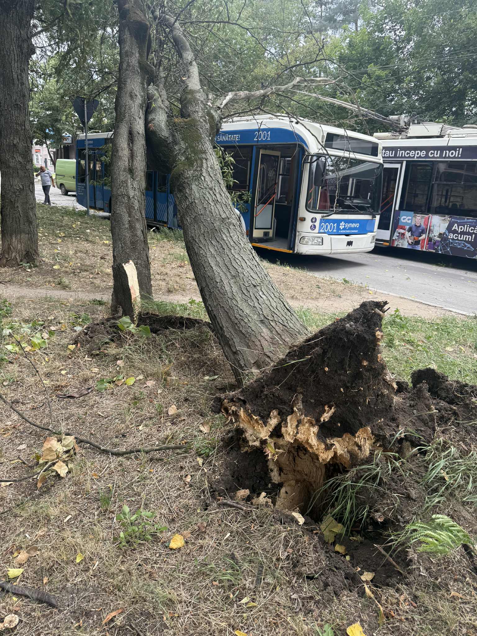 Mai multe mașini au fost avariate. Pe strada Strîi, un arbore a căuzut pestre trei automobile.