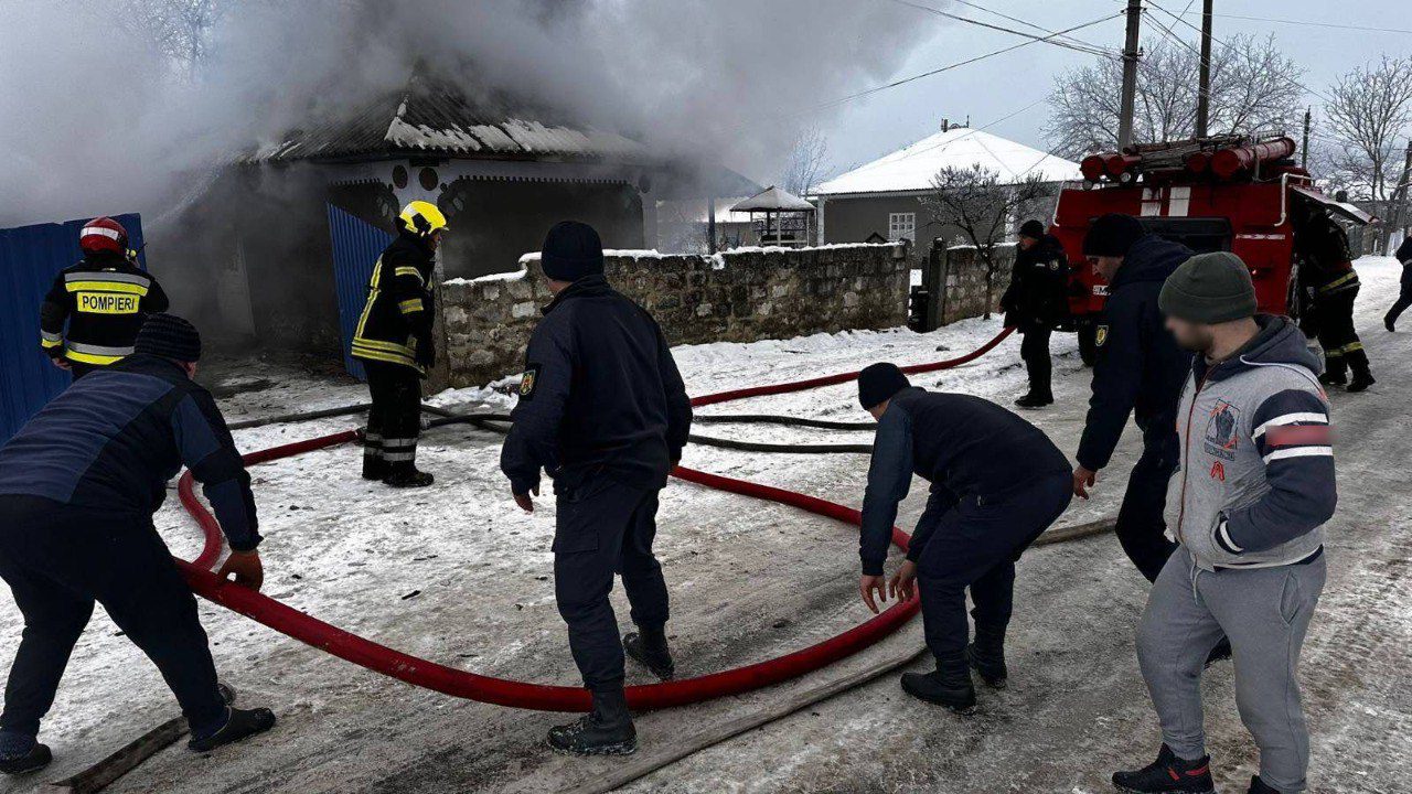 Incendiu puternic într-o locuință din apropierea frontierii Cuconeștii Noi, raionul Edineț, la aproximativ 2.000 de metri de graniță.