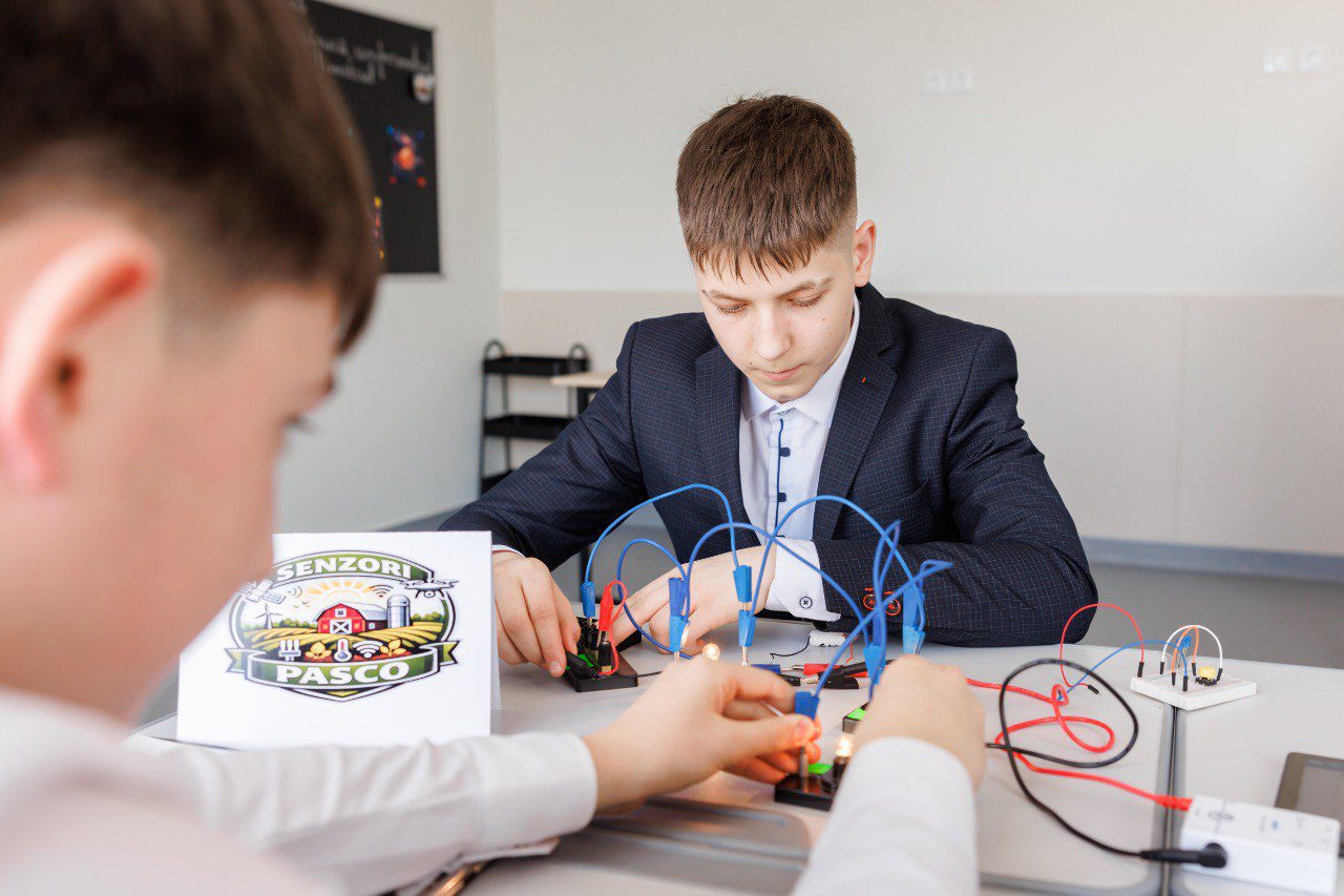 La fizică, tinerii construiesc circuite electrice, folosesc senzori și module speciale pentru a înțelege cum circulă curentul, ce înseamnă tensiunea sau rezistența.