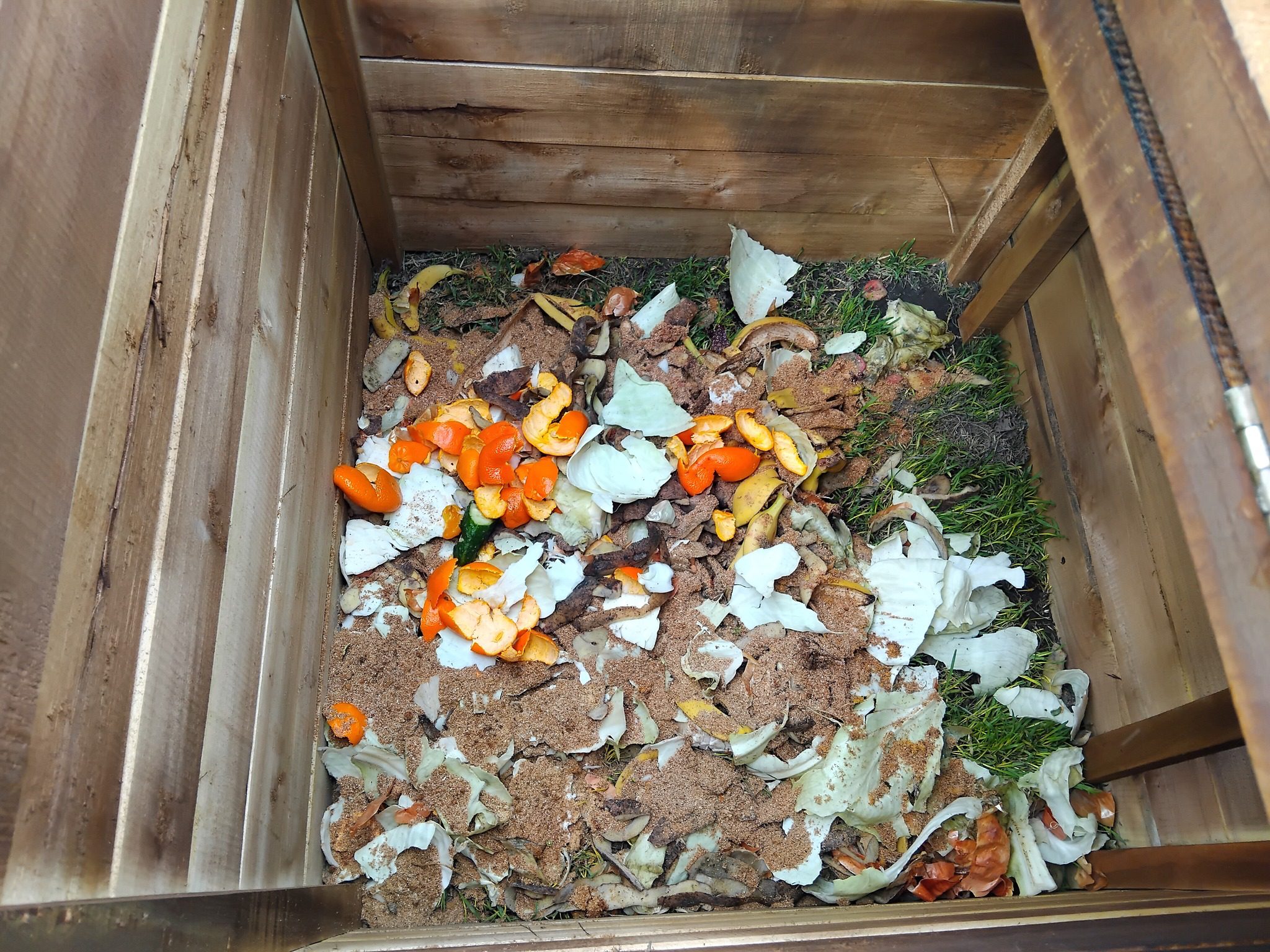 - Strat verde (umede, bogate în azot): coji de legume și fructe, iarbă proaspătă, zaț de cafea;