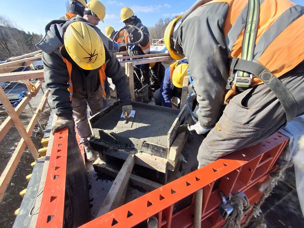 Drumarii au finalizat turnarea riglelor, iar în prezent desfășoară lucrări de armare a banchetei cuzineților, după care urmează turnarea acestora cu beton monolit, transmite MOLDPRES.
