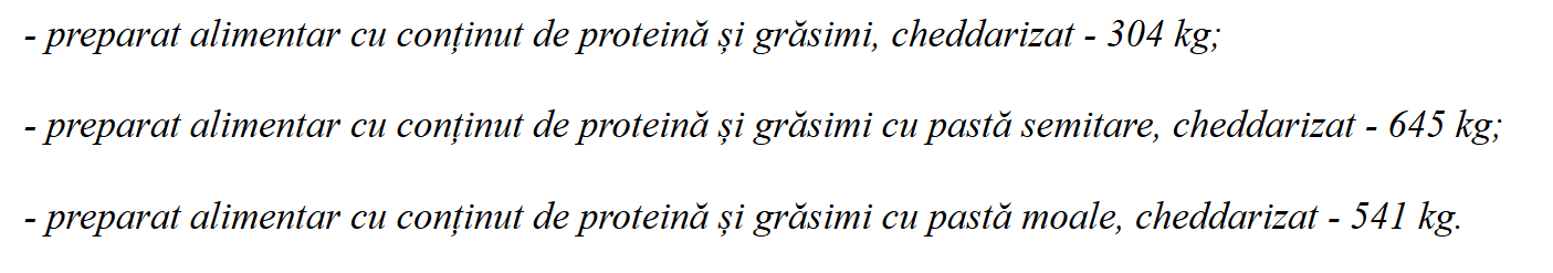 Potrivit ANSA, este vorba despre preparate alimentare cu conținut de proteină și grăsimi, „cheddarizat”, la care analizele de laborator au confirmat depășirea valorilor maxime admisibile pentru acizii grași trans.