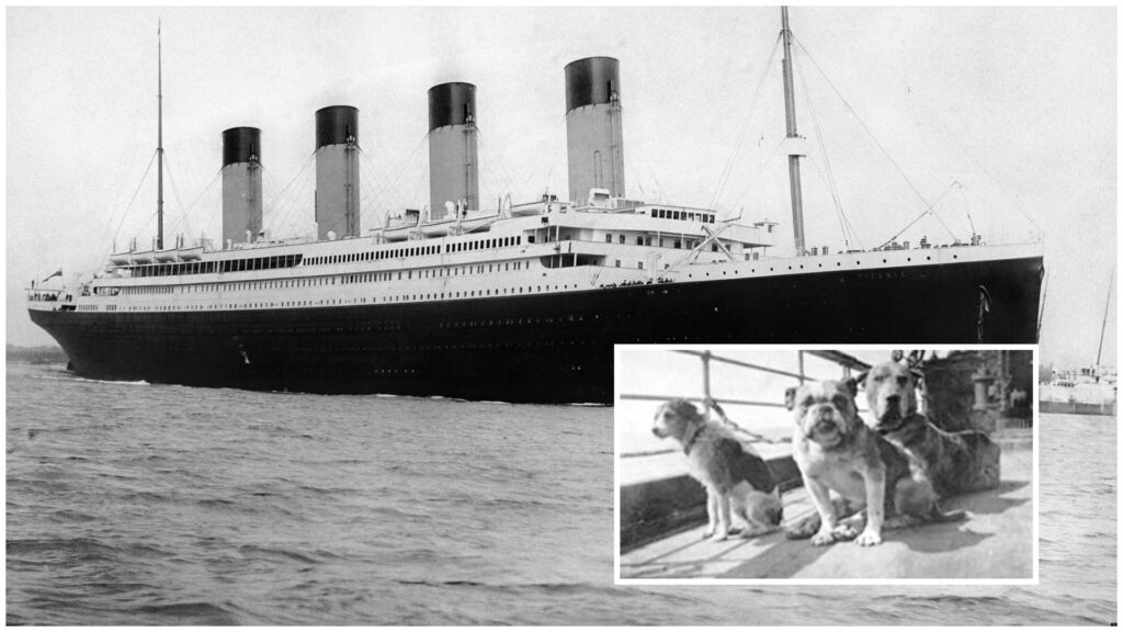 Cei mai mulți dintre câini se aflau într-un loc special amenajat în interiorul vasului, iar unii dintre ei urmau să participe la un spectacol care trebuia să aibă loc chiar în fatidica zi de 15 aprilie. Alți câini, mai mici, erau ținuți de stăpânii lor în cabine, deși acest lucru era complet interzis. Astfel, la momentul scufundării Titanicului, cei trei căței care au supraviețuit au putut fi luați în bărcile de salvare datorită dimensiunii lor. Este vorba despre un pekinez și doi pomeranieni.