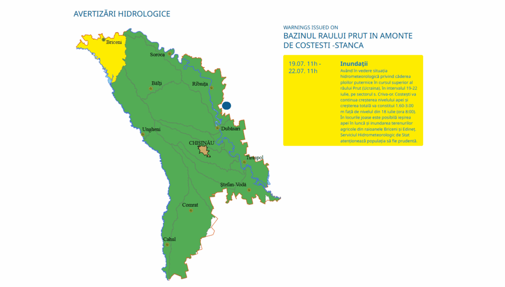Anterior, Hidrometeo anunța că Prutul va crește cu până la un metru, între satele Leușeni și Brânza, în perioada 19-26 iulie, ca urmare a majorării temporare a debitului deversat din lacul de acumulare Costești-Stânca, cu aproximativ 65-70 de metri cubi pe secundă.