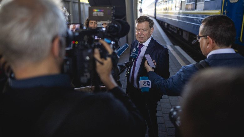 The minister arrived by overnight train from Poland, accompanied by a high-level delegation from the German arms industry. pic.twitter.com/pxFpkliNeB
