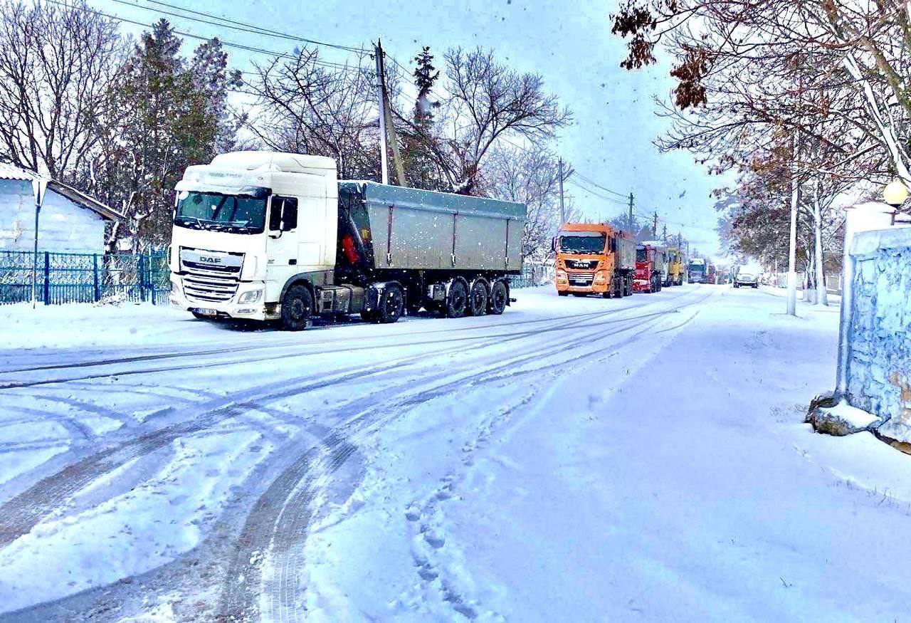 Totodată în satul Brînzeni din raionul Edineț, circa 20 de mașini de mare tonaj sunt stopate pe partea carosabilă, din cauza ninsorii.