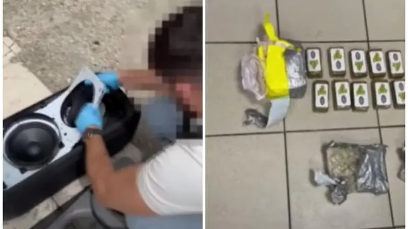 În interiorul boxei erau ascunse, în pachete vacumate, aproximativ 2,4 kg de droguri de tip hașiș, cocaină, MDMA și muguri de marijuana.