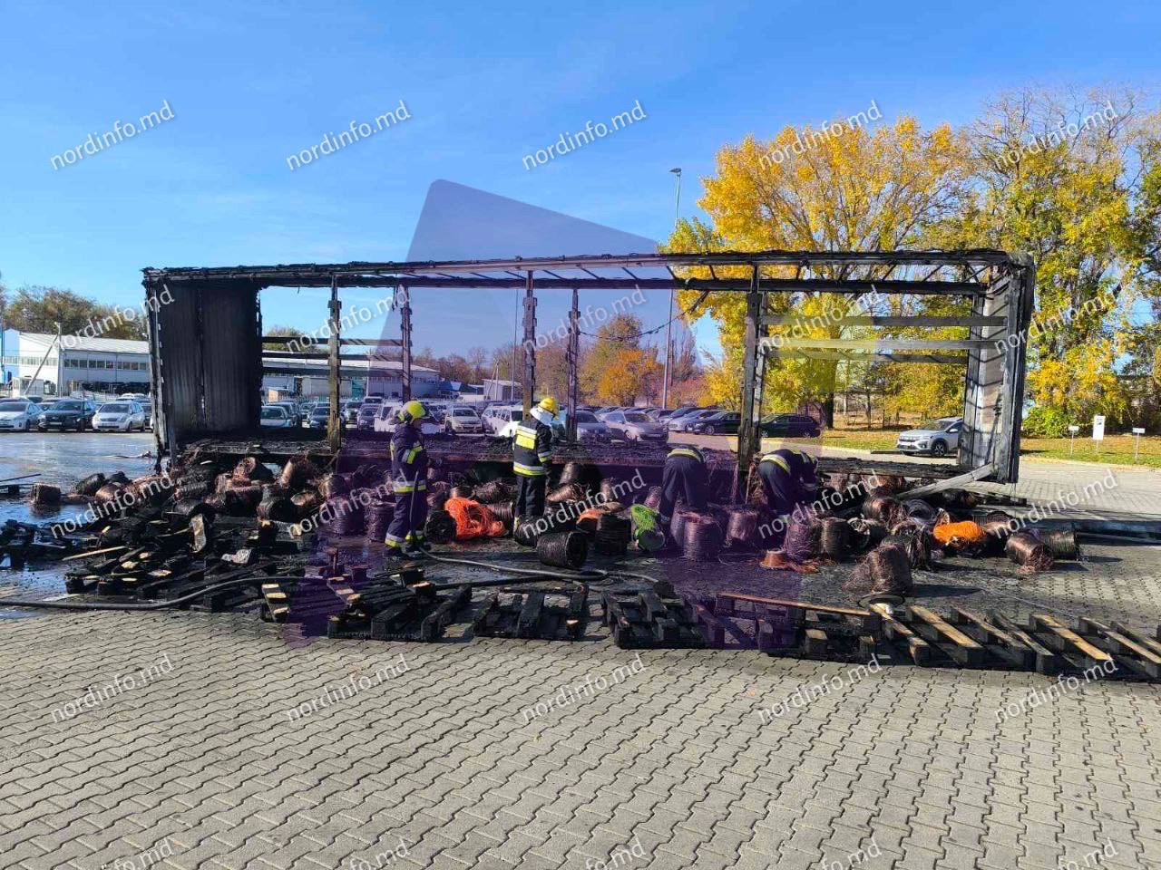 Remorca unui autocamion de tip TIR parcat pe strada Industrială din municipiul Bălți, a fost cuprinsă de flăcări în această dimineață.