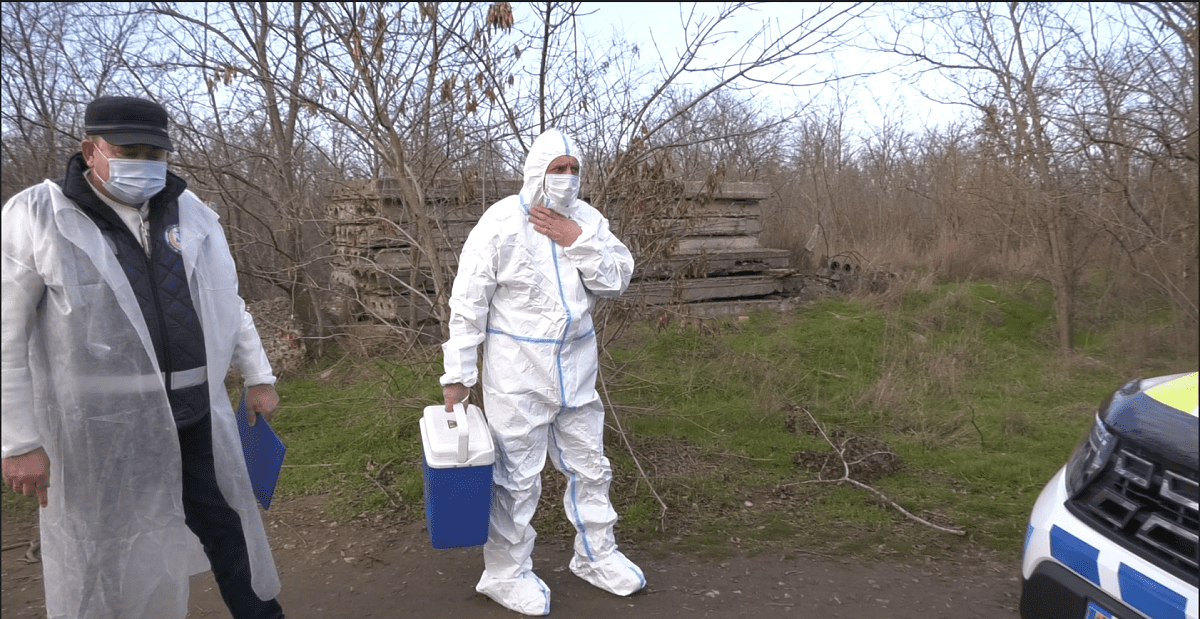 Echipați în costume de protecție, reprezentanții Agenției Naționale pentru Siguranța Alimentelor din Căușeni au prelevat probe de la animalele moarte.