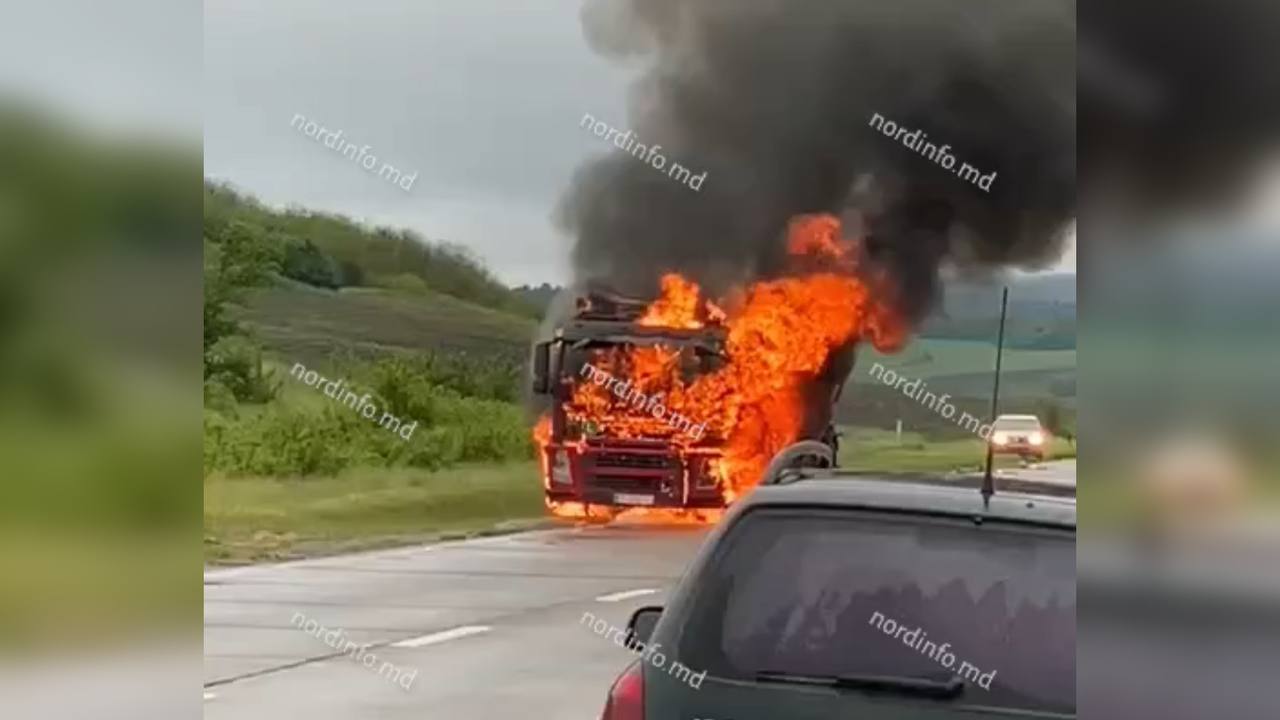 Un camion a luat foc în apropiere de satul Rădeni, raionul Călărași. Imaginile au fost surprinse de trecători.